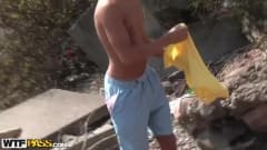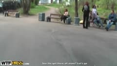 Um caçador de estudantes vai para a faculdade para pegar uma safada que quer se aventurar em seu primeiro vídeo pornô ao ar livre e o consegue.