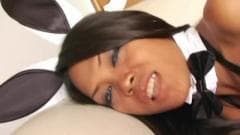 Cara batendo na bunda e tocando a bucetinha da coelhinha trans!