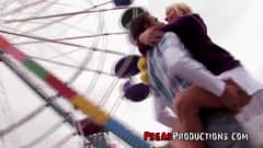 O jovem casal está em um parque de diversões, a buceta de Candy está pegando fogo, ela é penetrada no carrossel e começa a fazer sexo oral em Xavier na roda-gigante!