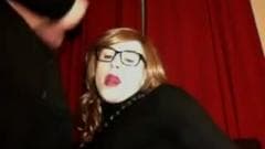 Primeiro ela exibe o seu belo corpo e a lingerie sexy. Então ela começa a chupar o pau de um cara gordo e depois se vira para curtir o sexo anal!