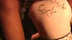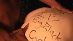 Ela está vendada, algemada e amordaçada, e adora esse jogo de sadomasoquismo que seu negro oferece, assim como seu pau na boca e no cu e o esperma quente!