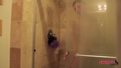 Korra é uma garota safada. Ela é filmada no chuveiro e começa a mexer na bunda, enfiando os dedos, e se masturba. Ela está com tesão pra caralho!