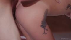 Uma loira peituda espetacular toma um banho relaxante com seu namorado na banheira e logo as coisas esquentam.