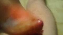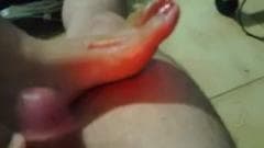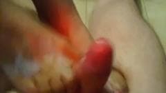 Esta mulher decide se masturbar com este homem usando os pés. Ele tem um pau muito pequeno e é por isso que ela coloca creme para estimulá-lo