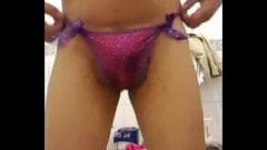 Esse velho gay gosta de se vestir com calcinhas sensuais para se divertir com seu pau na webcam. Ele experimenta vários modelos.