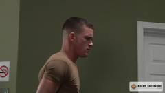 Esses soldados americanos sempre precisam de uma cauda. O cara coloca sua arma grande na boca do outro e dispara vários tiros.