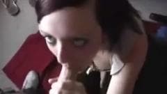 Venha, vadia, venha aqui! Eu quero que você me chupe! Ela o obedece e começa a chupar seu pênis no ponto de vista, a fim de engolir todo o seu esperma.