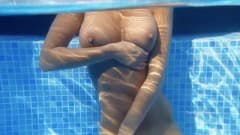 Adria nos oferece hoje um show sexy em sua piscina. Aposto que ninguém vai se recusar a foder essa morena gostosa!