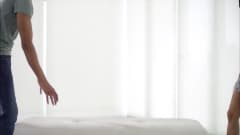 Este jovem casal enfaixa os olhos para cozinhar. Isso o torna mais erótico e romântico porque o fator surpresa interrompe os hormônios.