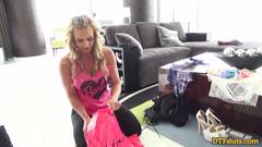 Uma prostituta loira e sexy assinará o contrato de sua vida e, para celebrá-lo, foderá como uma cadela no cio