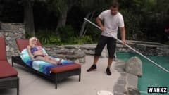A jovem e esbelta puta loira está relaxando na piscina quando recebe um grande empurrão de pau! Imperdível!
