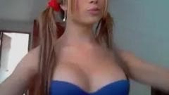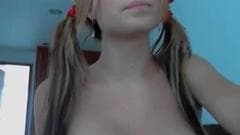 Loirinha trans doce e atrevida brincando em frente à webcam