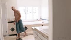 Nikki Vicious é uma pornstar travesti loira muito sexy que é enrolada na cama por um homem forte e tatuado.