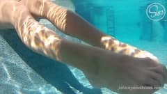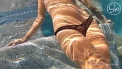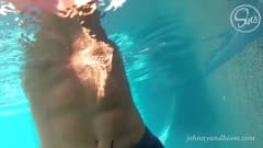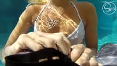 Essa loira linda enlouquece de ter seu macho com o pau ereto dentro da piscina e perde a oportunidade de se divertir com ele.