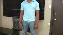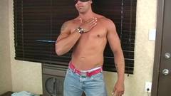 Esse latino musculoso é massagista. Quando está sozinho, ele gosta de acariciar seu corpo e se masturbar até gozar.