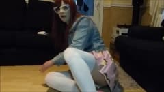Esta jovem trans é muito meiga e adora brincar com o pau sozinha. Ela se masturba e acaba ejaculando com força. Ela adoraria ter alguém pra chupar seu pau!