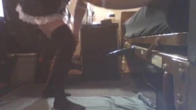 Gay vestido de empregada doméstica fodendo seu cuzinho com um vibrador