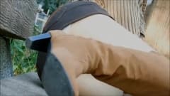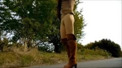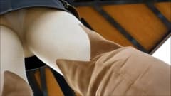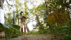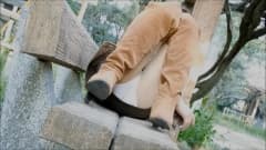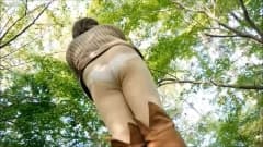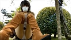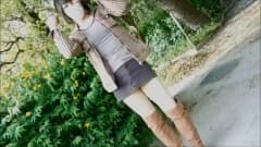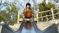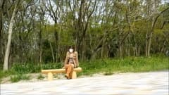 Esta jovem japonesa adora passear no parque. Ela gosta de exibir as curvas por baixo das suas meias translúcidas. A garota está se divertindo sozinha.