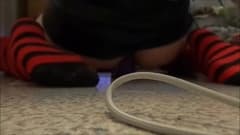 Vestida como uma joaninha, esta jovem trans se diverte colocando o vibrador na bunda e masturbando o seu pau. Ela se masturba até gozar!