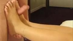 Essa garota sabe como dar prazer ao seu namorado. Seus pezinhos fazem mágica. O cara ejacula graças ao seu trabalho de pés.