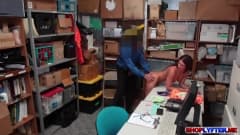 Esse chefe de segurança castiga as belas ladras fodendo elas em todos os seus buracos no armazém. Hoje foi a vez de Davina Davis, a morena sexy