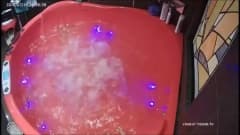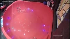 Uma garota bonita convida dois amigos para o seu jacuzzi e os dois se masturbam e brincam com seus galos debaixo de água quente.