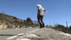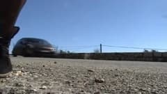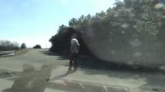 Neste vídeo, um homem idoso vestido de mulher fica na beira da estrada e mostra seus órgãos genitais aos motoristas.