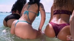Loira bonita de cabelo encaracolado e pele bronzeada vai bater uma siririca gostosa até gozar para toda a galera.