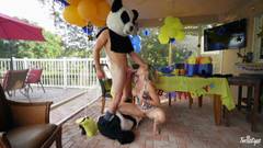 MILF gostosa é fodida no aniversário de seu filho por um urso panda