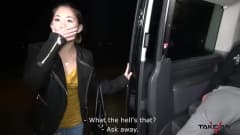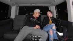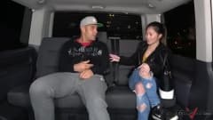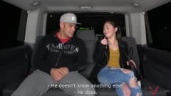 Uma asiática bonita não hesita em transar em uma van no trânsito, enquanto o motorista faz o seu caminho