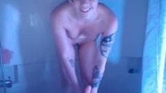 Uma jovem tatuada nos mostrou suas habilidades como atriz pornô no chuveiro! Vai te excitar muito com seus peitos pequenos