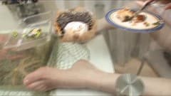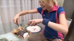 Na sala de jantar, Alice se masturba