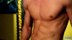 Justin Owen termina o entreinamento tarde e ninguém está mais lá na academia. Ele agora pode se masturbar no silêncio do banheiro!