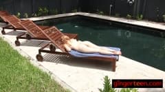 Essa linda garota ficou com tesão o dia todo, por isso ficou nua na piscina! Ela precisa e vai receber um pau grande para aliviar seus desejos!