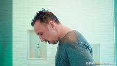 Aidra Fox é espionada pela amiga de seu irmão enquanto ela toma um banho quente. O cara tem uma legging enorme que ela não vai deixar ir.