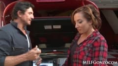 Essa milf morena gostou do mecânico; por isso, vai pagar os serviços com uma boa foda. Ela veste sua melhor lingerie porque o preço é alto.