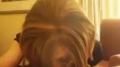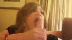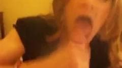 Ela é uma gulosa e está se divertindo com esse homem gostoso. Ele está filmando enquanto ela pega um boquete de garganta profunda e engole todo o esperma!