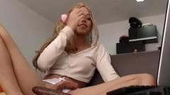 Loira trans novinha se masturbando e mostrando o cuzinho!