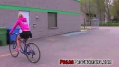 Garota jovem e safada se masturba em sua bicicleta