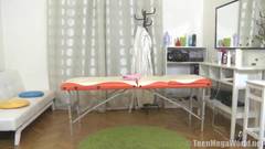 Esta bela loira finge ter alguns problemas nas costas para poder chamar o massagista sexy, provocá-lo e, finalmente, transar com ele!