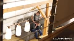 Essa morena peituda e gostosa apanha um casal bissexual pegando boquete um para o outro e se junta a essa festa de sexo muito legal. .