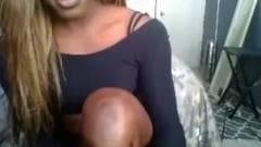 Negra trans esfregando seu pau enorme até esguichar muito esperma!