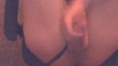 Trans misteriosa de lingerie preta batendo uma punheta gostosa!