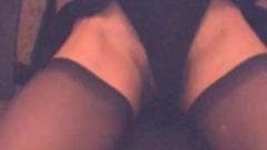 Essa gostosa de calcinha cavada e meias pretas é um mistério! Ela vai mostrar apenas o seu pênis sendo masturbado e nos deixa com vontade de ver mais!