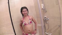 Eles estão filmando ela tomando banho. Essa garota asiática tem um pau super peludo com uma bunda redonda para foder! Ela ensaboa todo o corpo sorrindo.
