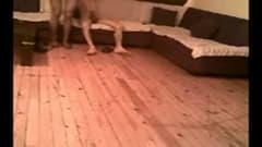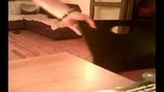 Usando uma webcam normal, essa travesti faz seu pornô amador em casa e até convida outro a mostrar seu pinto e lhe dar uma punheta também