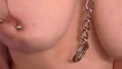 Ela se comportou mal, portanto, terá que sofrer as conseqüências. Ela recebe chicotes e objetos pesados pendurados nos seus mamilos e buceta.
