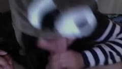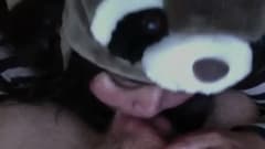 Essa morena sente muito prazer em dar prazer ao cara. Ele está deitado relaxando enquanto ela segura o pau dele e suga, passa nos lábios e volta a chupar!