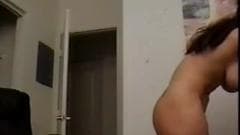 Essa morena gostosa adora exibir sues grandes peitos e sua buceta sexy frente a câmara enquanto ela trabalha seus músculos
