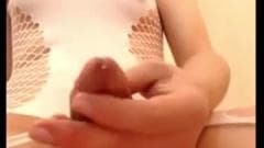 Ela está se divertindo sozinha na frente da cam. Está vestindo uma lingerie sexy, aberta no pênis, o que permite que ela se masturbe gostoso até ejacular!